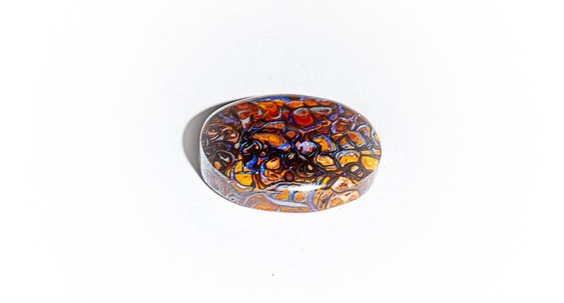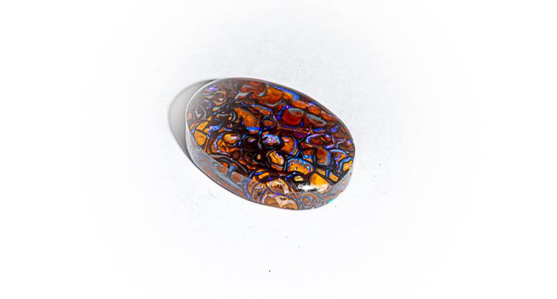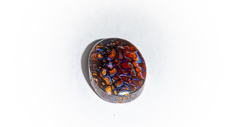 Cette opale Koroit boulder possède de jolies veines de couleur bleu lagon et violet